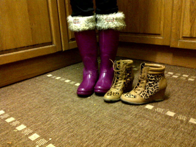 positioned cerise pink, fur lined Hunters. The said footwear still somehow